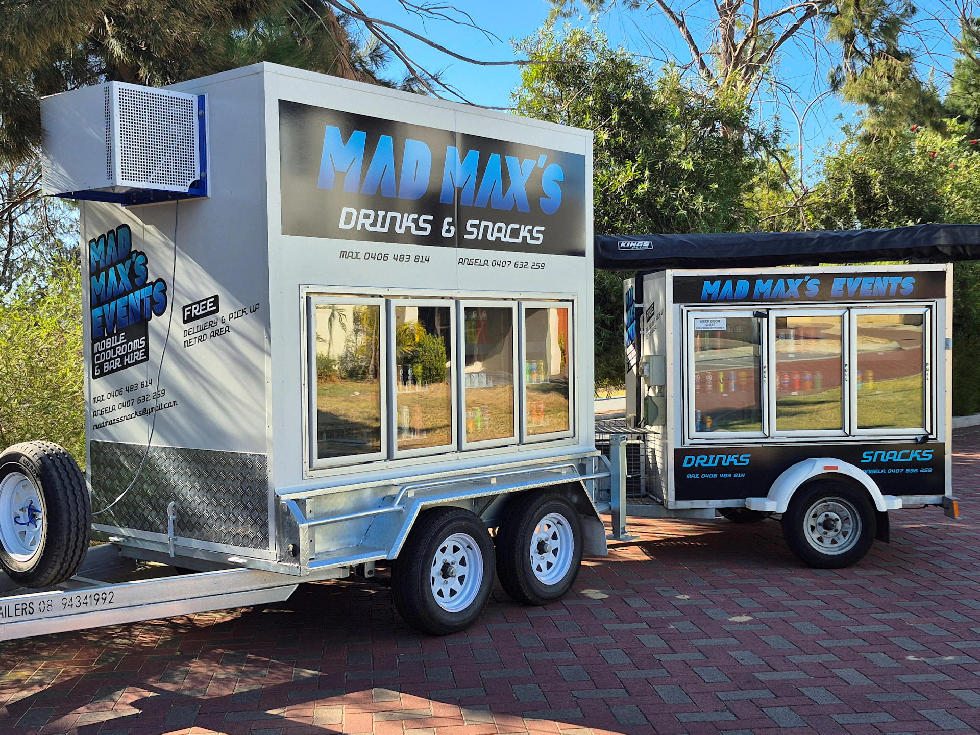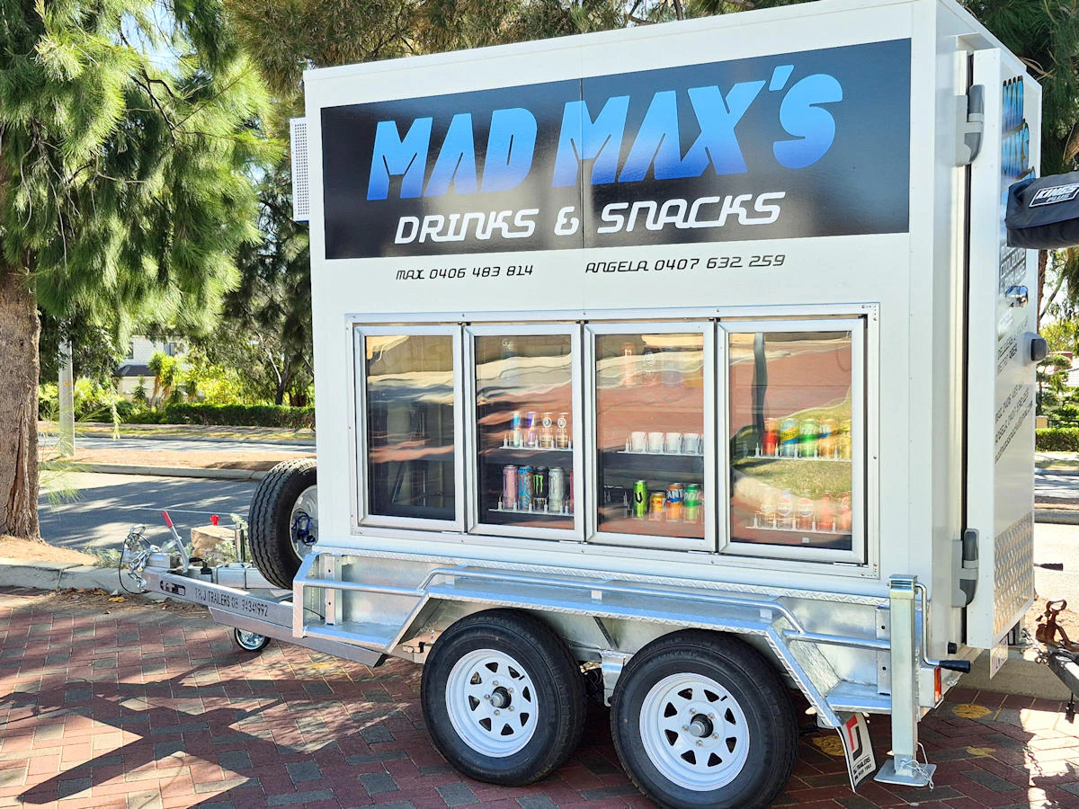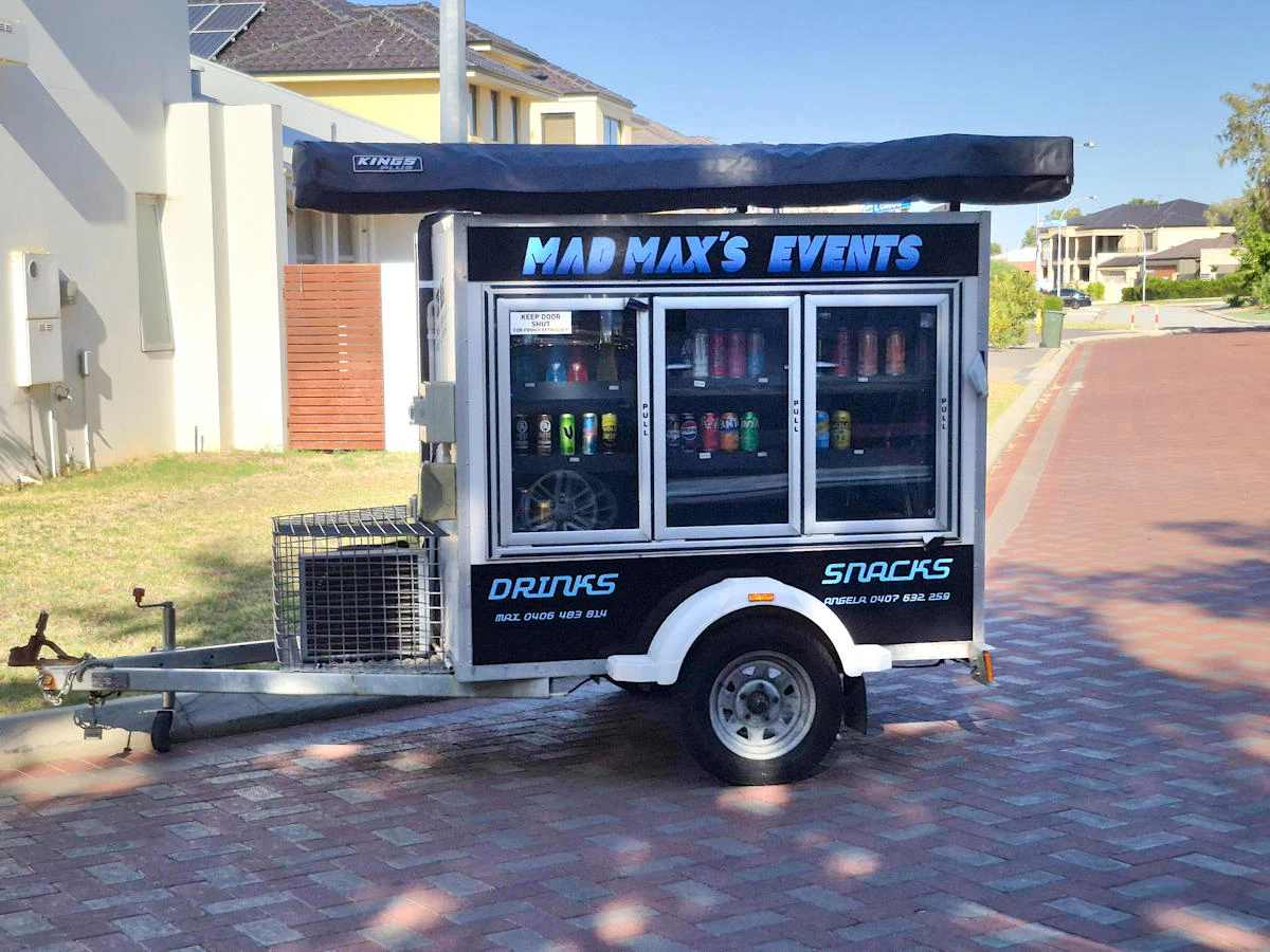 Keep drinks cold, food fresh, and your event running smoothly. Mad Max hires 3-door and 4-door glass mobile cool room trailers plus a mobile bar on wheels across Perth.